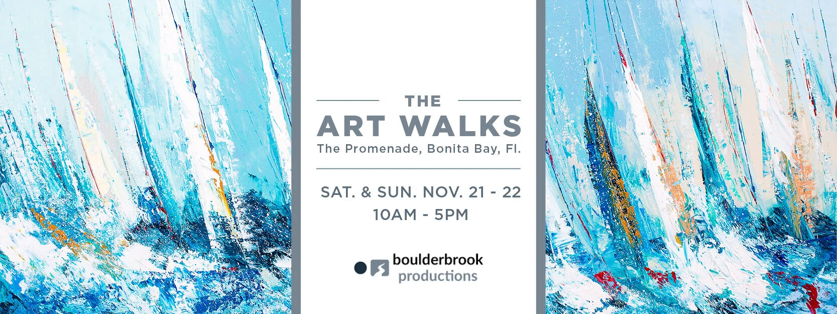 Join us at The Art Walks at The Promenade at Bonita Bay and immerse yourself in the area's finest art in a unique outdoor ArtWalk! Held on Saturday and Sunday, November 21st and 22nd, visitors can stroll the pathways and sidewalks of the Promenade at Bonita Bay where artists from near and far will line the walkways displaying their art in a variety of mediums.